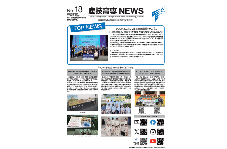 毎年2回発行しており、学生の活躍を中心に産技高専の旬なトピックスを厳選してお知らせしています。