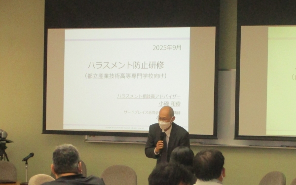 2025年9月10日(水)に品川キャンパス、9月18日(木)に荒川キャンパスで、法人ハラスメント相談員アドバイザーの小磯 和俊先生を講師にお迎えし、教員を対象としたハラスメント防止研修を実施しました。