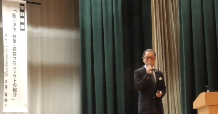 本大会では、吉澤校長による特別講演「医工連携 教育・研究プロジェクトの紹介」が行われ、荒川キャンパスの4コースから選抜された学生を対象に展開されている正規外副専攻「未来工学教育プログラム」を中心に、「医工連携共同研究プログラム」、「医工連携ビジネスプログラム」について紹介されました。