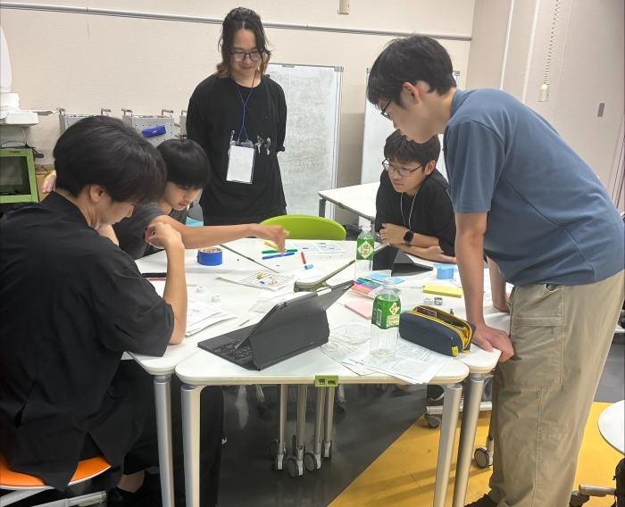 ○【合宿】自分のアイデアを発表し、互いに意見交換を行います。